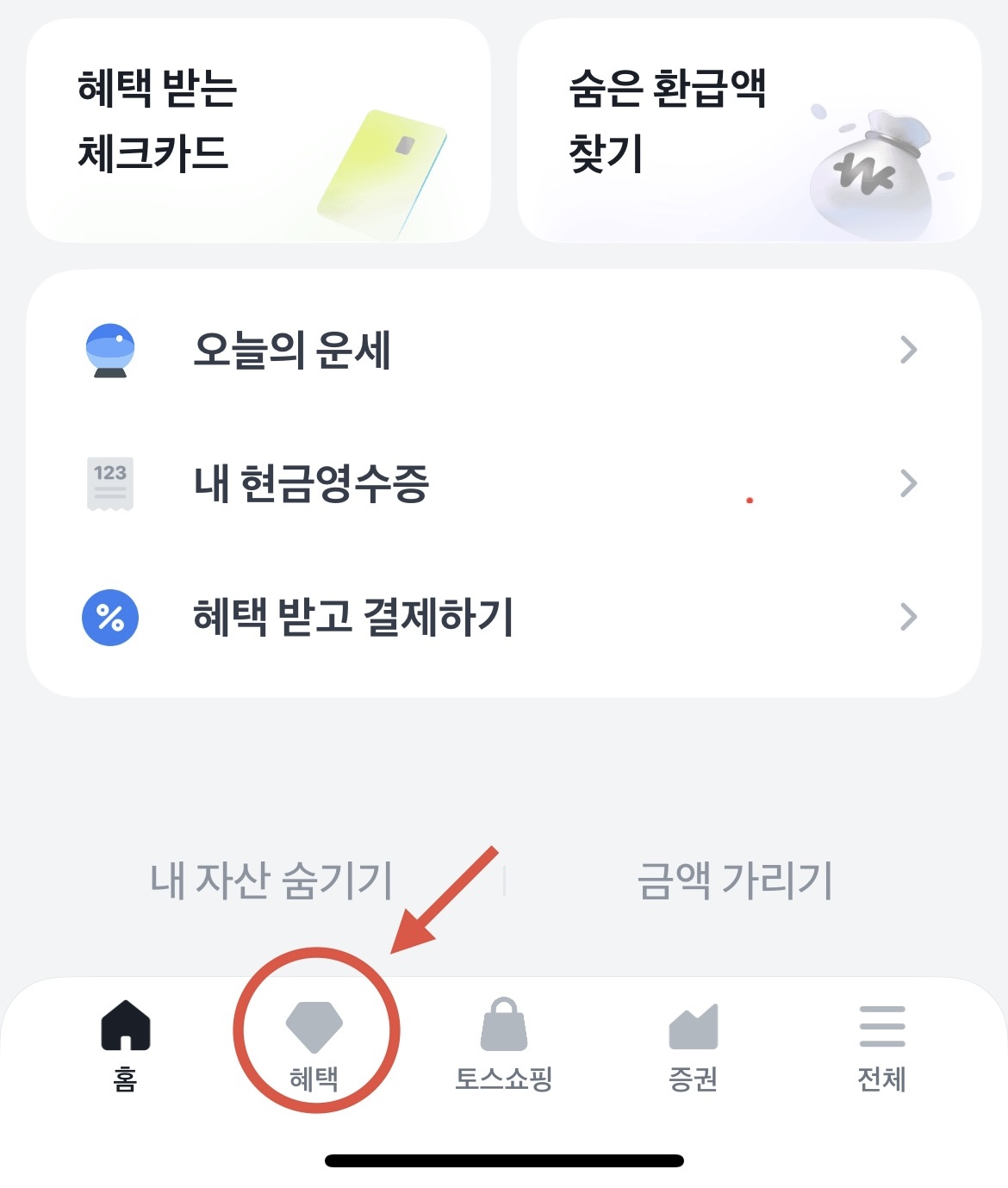 하단에 “혜택” 으로 들어간다