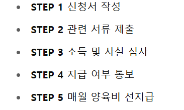- 양육비이행관리원 홈페이지에서 온라인으로 신청하거나,